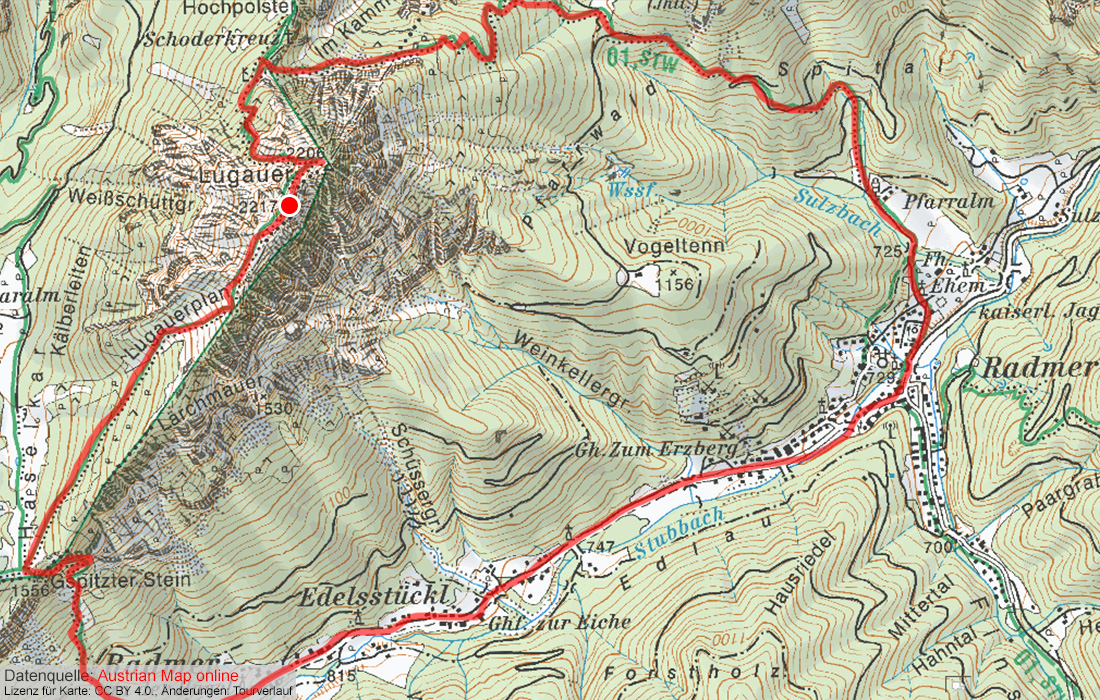 Charakter: Herrliche Lugauer Überschreitung. Langer Straßenrückweg nach Radmer an der Stube.