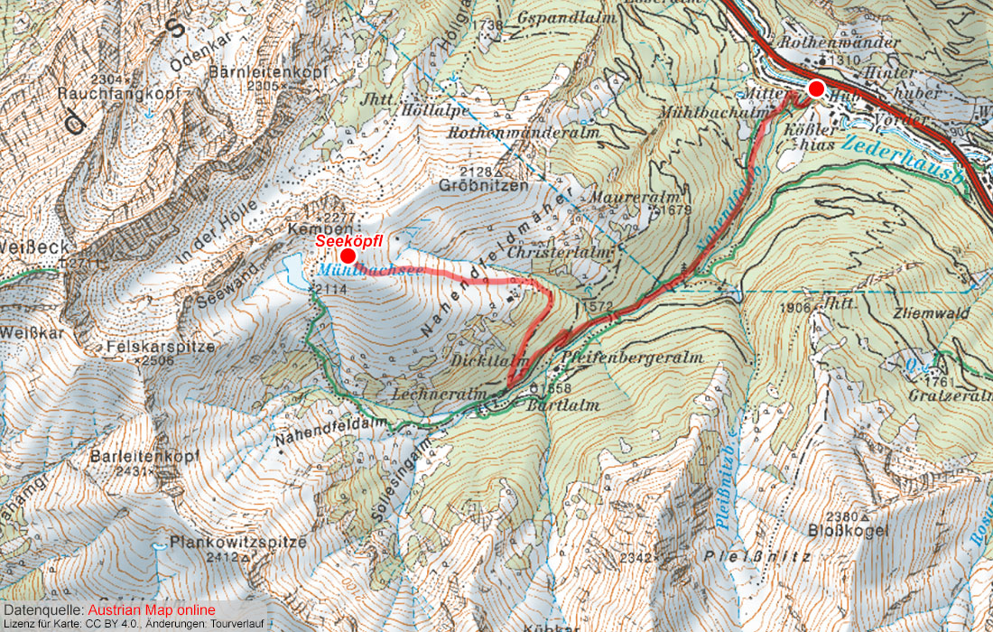 Charakter: Gemütliche Genusstour mit herrlichem Panorama. Das Seeköpfl (zwischen Felskarspitze und Gröbnitzen) ist in vielen Plänen nicht eingezeichnet.