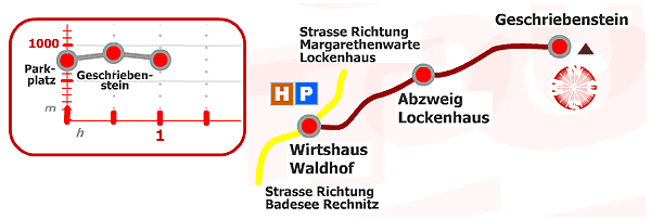 Anreise: von Norden über A2, Krumbach, Kirchschlag und Lockenhaus Richtung Naturpark Geschriebenstein bis Parkplatz; von Süden über A2, Oberwart und Rechnitz