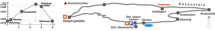 Wandertour; Rundwanderweg von den Hofalmen über das Rinderfeld zur Hofpürglhütte und zurück